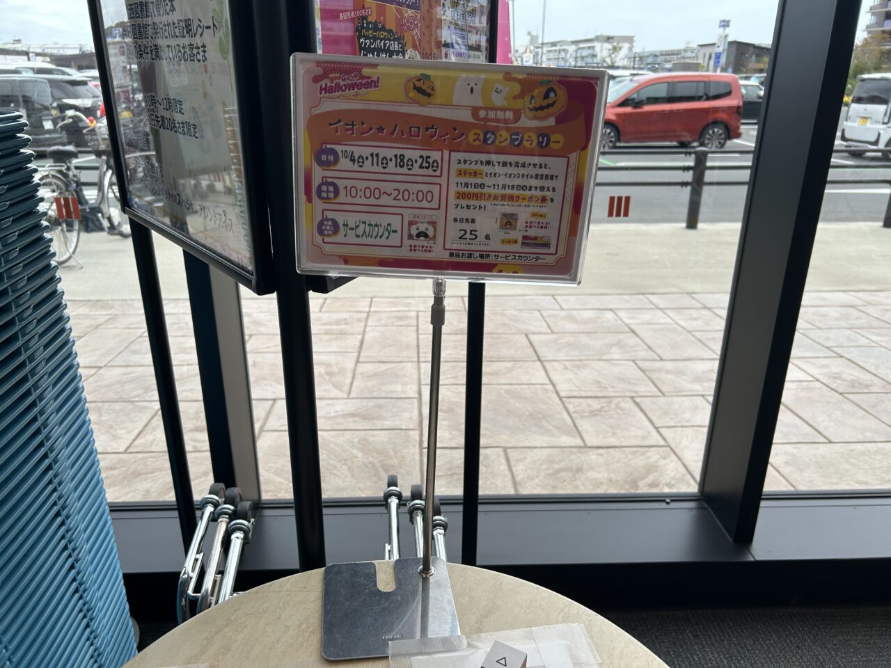イオンハロウィンスタンプラリーが2025年10月4日(土)、11日(土)、18日(土)、25日(土)の10月の毎週土曜に開催しています。サービスカウンターでスタンプ台紙を受け取り、イオンスタイル浜松西伊店内に設置してあるスタンプを押してモンスターを完成させるというものです。スタンプは3カ所にあります。