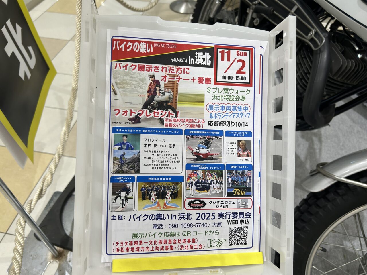 イベントに参加した方々にバイクの魅力を知ってもらおうと、バイクの集いin浜北実行委員会が主催する、オートバイ製造の都市である浜松で2010年から開催されているイベントだそうです。2025年の開催は11月2日(日)になります。