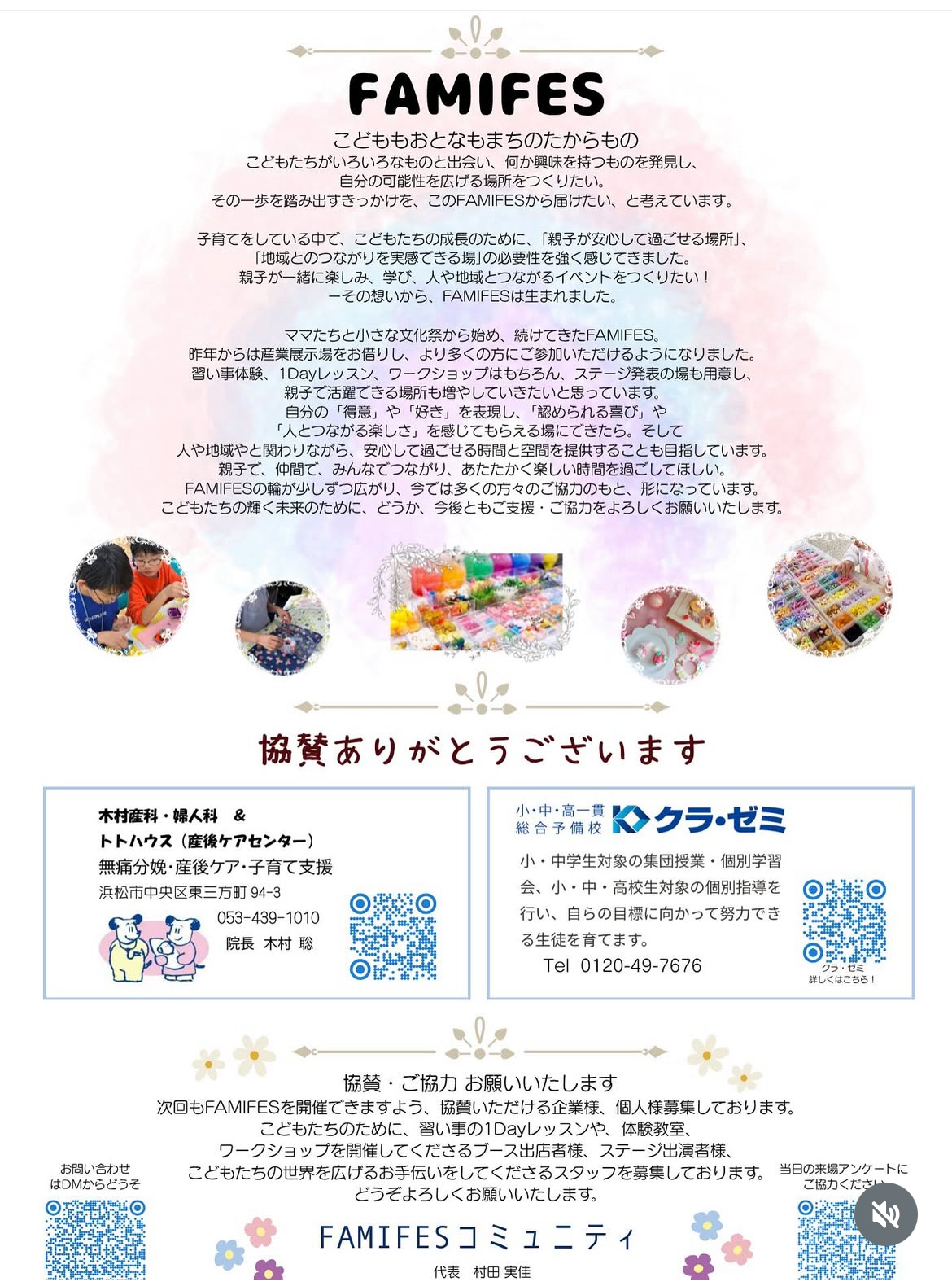 【浜松市】浜松市総合産業展示館で2025年11月23日(日)FAMIFESが開催されます。