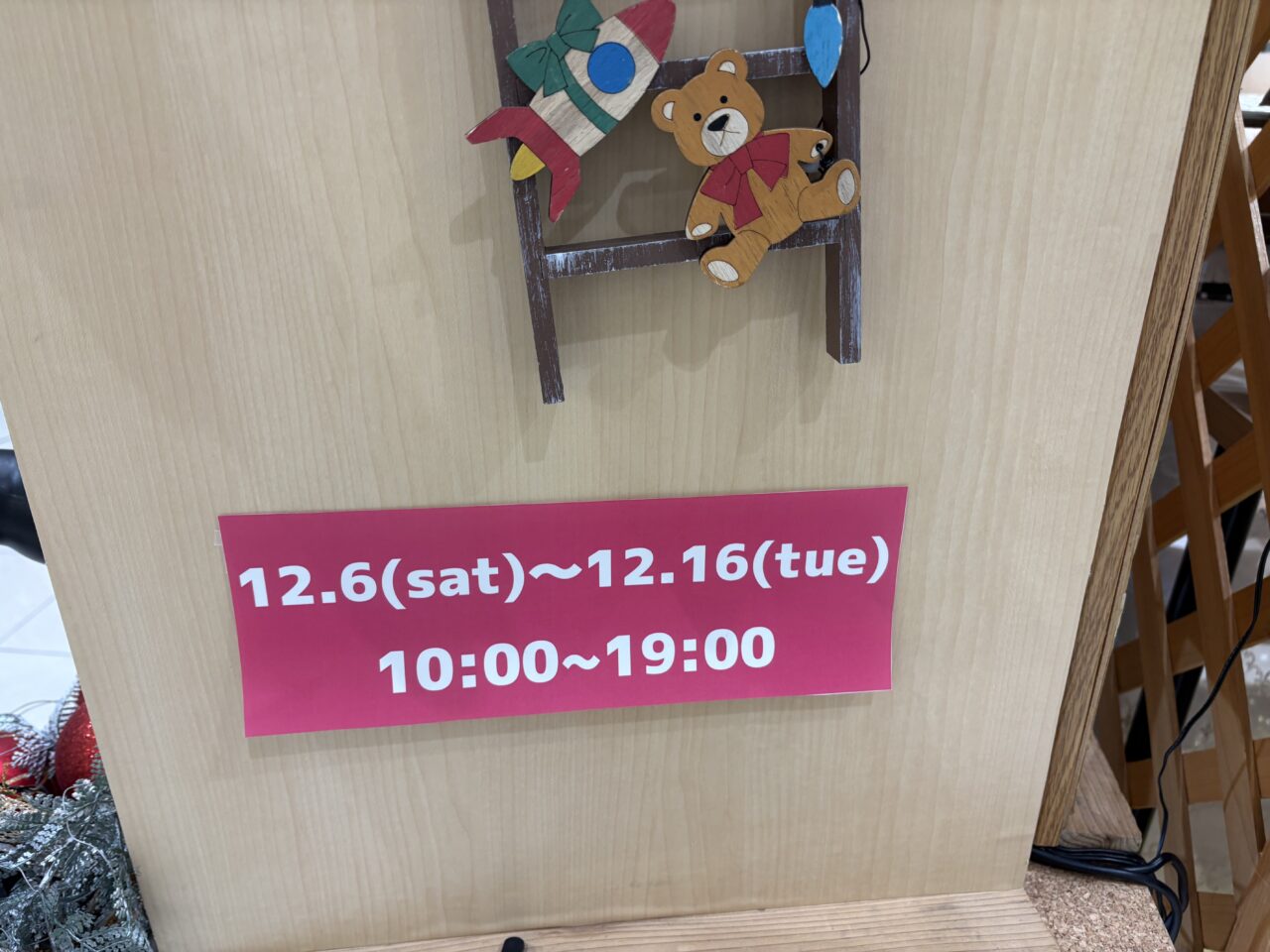 スピリチュアル占いは、エスカレーター逆側に席が設けられていて1人で参加する人もいれば、ご友人や家族同士2人でお話を聞いている姿が見られました。ワークショップは、12月13日(土)・14日(日)の2日間限定で、クリスマスワークショップと題してデコレーションポーチやフォトフレーム、カードケースが作れます。