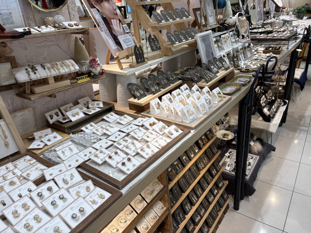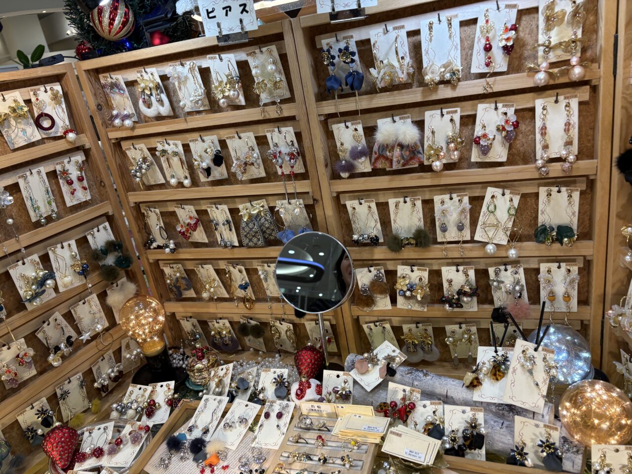 時期がクリスマスに近いということもあり、アクササリーもきらめき多めの品が並んでいます。1点1点手作りの商品は、“暮らしにちょっとした贅沢を”をコンセプトにぴったりの、世界に一つだけのアクセサリーやインテリアたちばかりです。