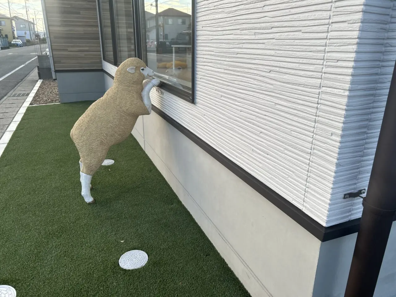 医院の前にはきりんが立っていて、院内を外からひつじが覗いているのがとてもかわいい歯医者さんです。