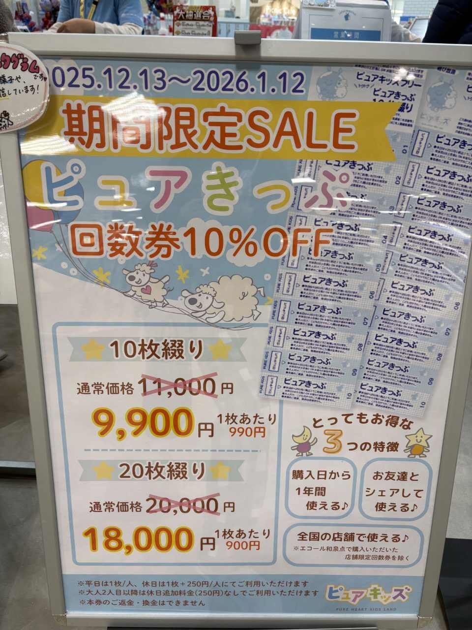 【浜松市】イオンモール浜松志都呂のピュアハートキッズランドの期間限定セール中の回数券がお得です