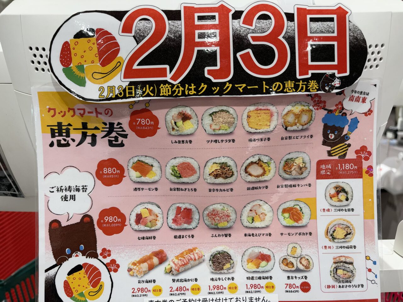 【浜松市】2026年2月3日の恵方巻きはクックマートでいかがですか?
