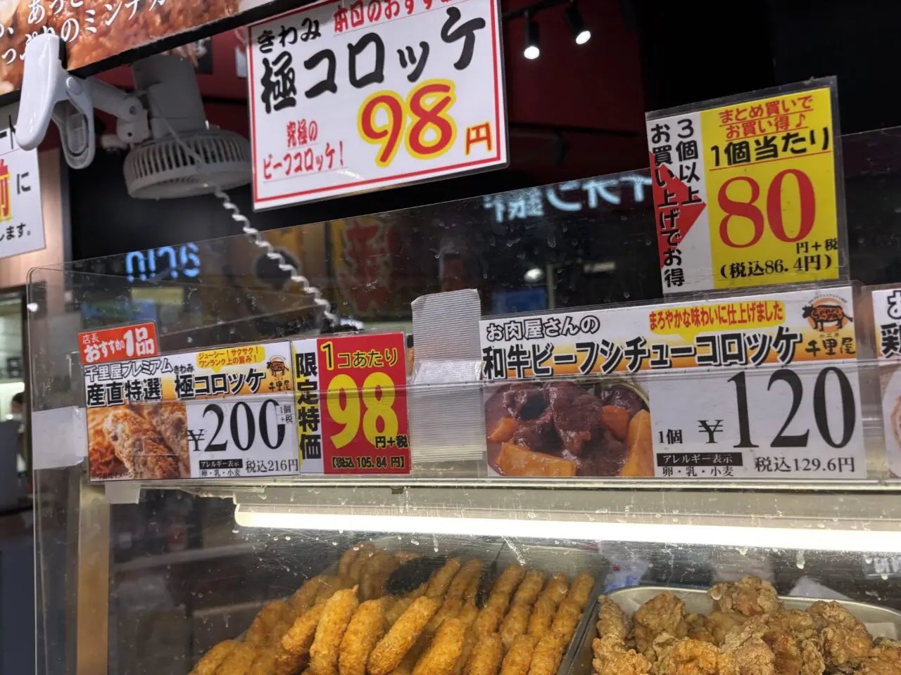 しかし、千里屋のコロッケはこれだけではありません。現在(2026年2月7日)、イオンモール浜松志都呂店で販売されているコロッケの種類は他に2つあります。産直特選極コロッケ216円(税込)と和牛ビーフシチューコロッケ129.6円(税込)です。極コロッケは究極のビーフコロッケと言われているので絶対食べてみたい一品です。高級ではありますが、本日のおすすめの日だと1個当たりなんと105.84円と半額になるから驚きです。冬に食べたくなる和牛ビーフシチューコロッケは3個以上購入すると1個86.4円(税込)になりお得です。営業時間はイオンモール浜松志都呂の営業時間に準じます。