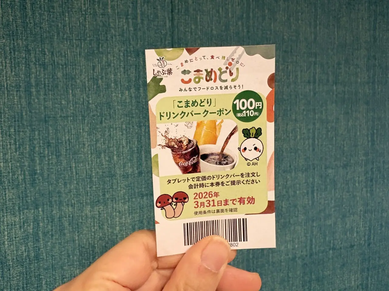 【浜松市】しゃぶ葉浜松入野店でフードロスへの取組み、こまめどりをしたらドリンクバークーポンをもらえました