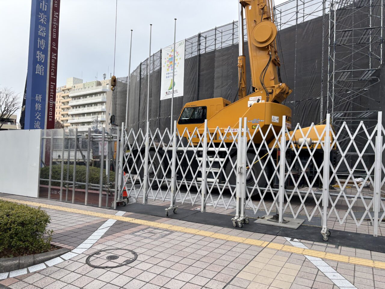 アクトシティ浜松の前の道を通る度に、浜松市楽器博物館を工事していることには気付いていましたが、工事が長く続いているため調べてみました。工事は2025年12月1日から開始されていて、2026年7月10日までかかるようです。およそ7ヶ月の修復工事となります。1994年のアクトシティ浜松の開館から30年以上を経過していることから、浜松市公共建築物長寿命化指針に基づき、予防保全のための施設改修工事が計画されました。浜松市楽器博物館は1995年4月に開館した日本唯一の公立楽器博物館です。楽器の歴史資料、世界中の楽器が集い、音楽のまち浜松ならではの博物館で、常設展に加え、特別展やコンサートイベントやワークショップなども行なわれていました。見る、聞く、触れるがたいけんできる楽器の博物館です。行くだけで心が奏でる建物の修復作業の後、また浜松の博物館としてたくさんの人々を楽しませてくれることを楽しみにしています。