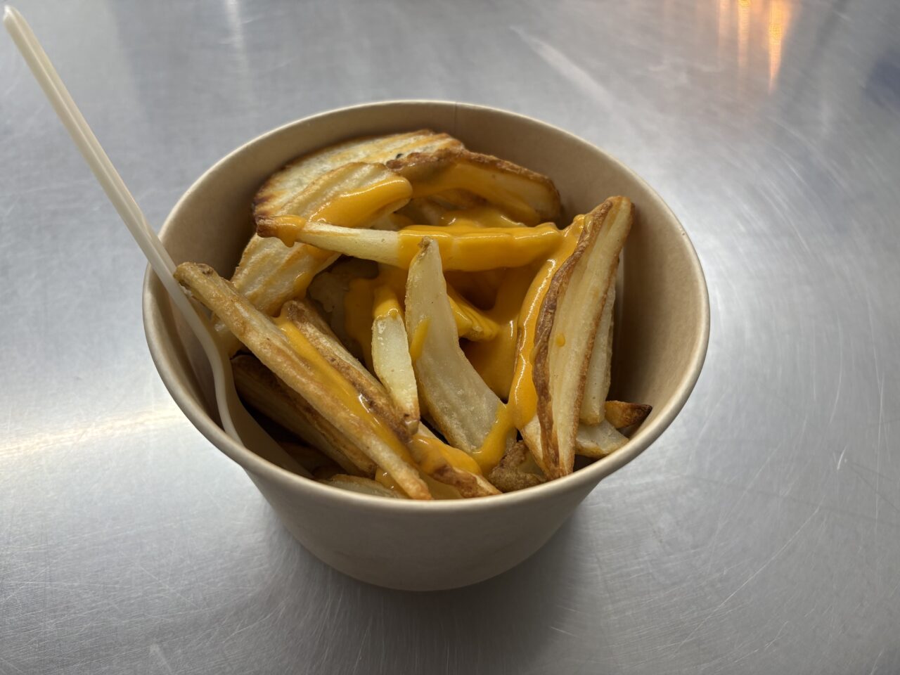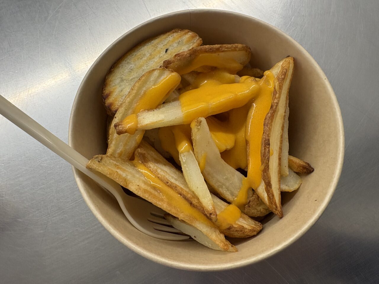 ポテトの上にチェダーチーズがかかっている商品です。驚くべきは、量と値段です。
